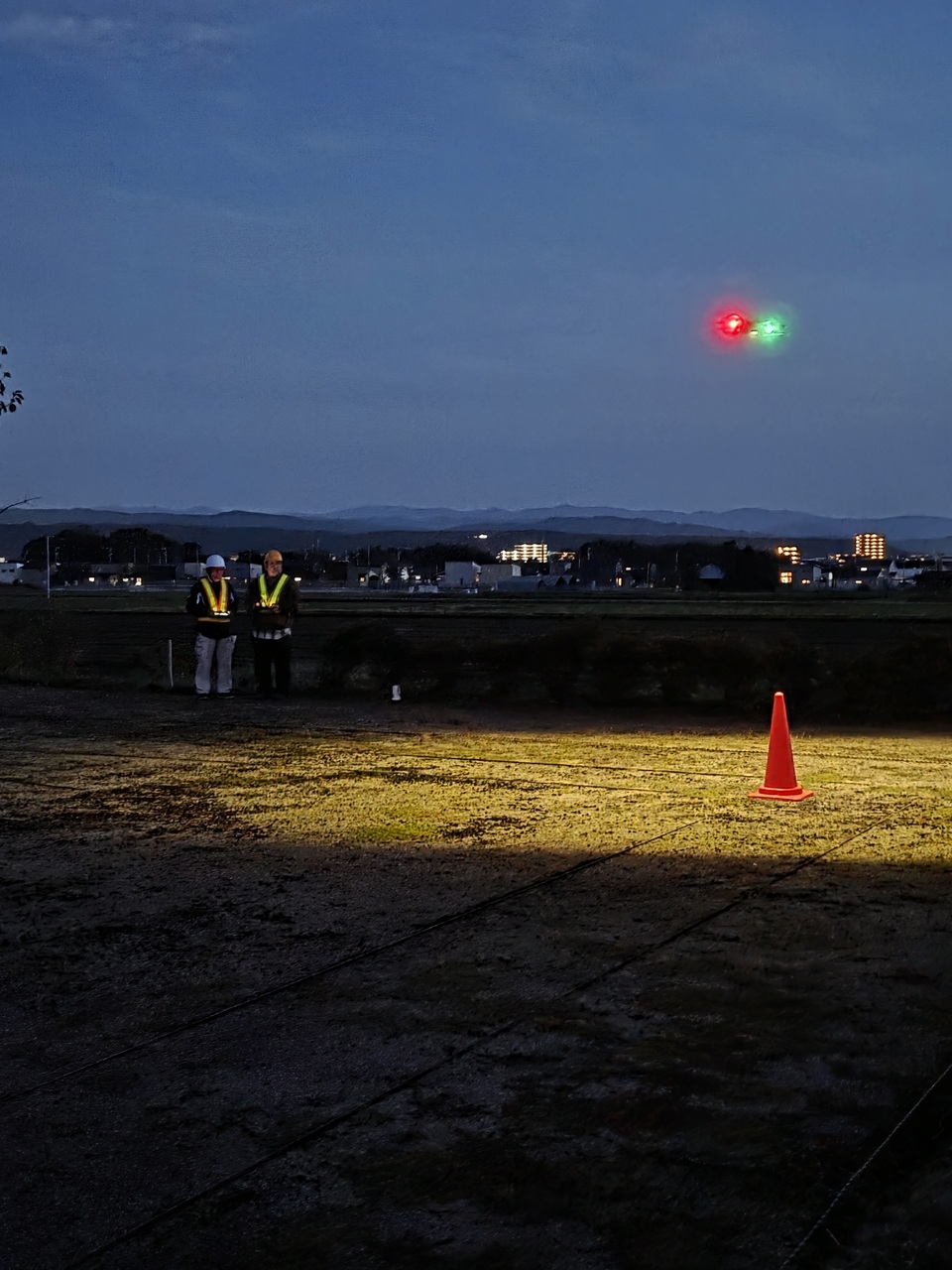 日没後の夜間飛行!LEDの見え具合でドローンの進行方向を把握してください!